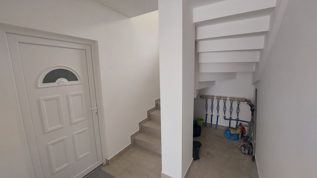 A lakáshoz kerten belüli autóbeálló, és egy külső tároló tartozik.