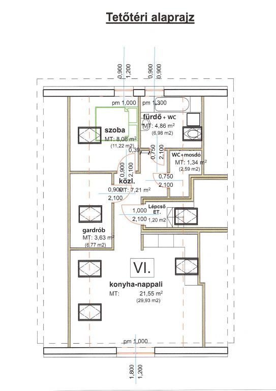- Nappali + konyha: 21,55 nm (29,93 nm)
