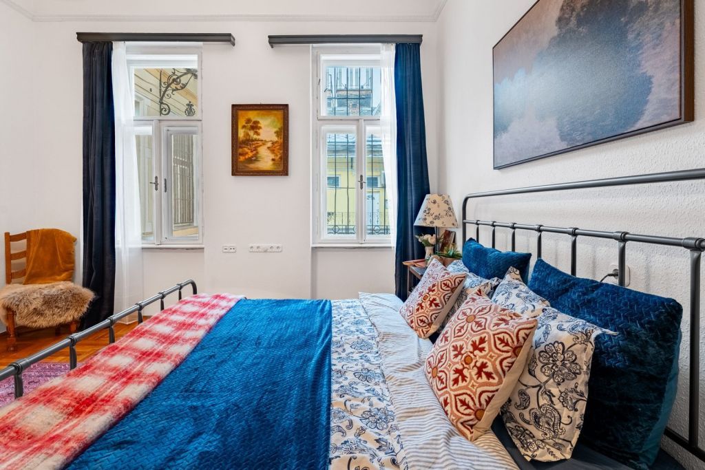 Belső udvarra néző, csendes elhelyezkedésű, 3,8 méteres belmagassággal.