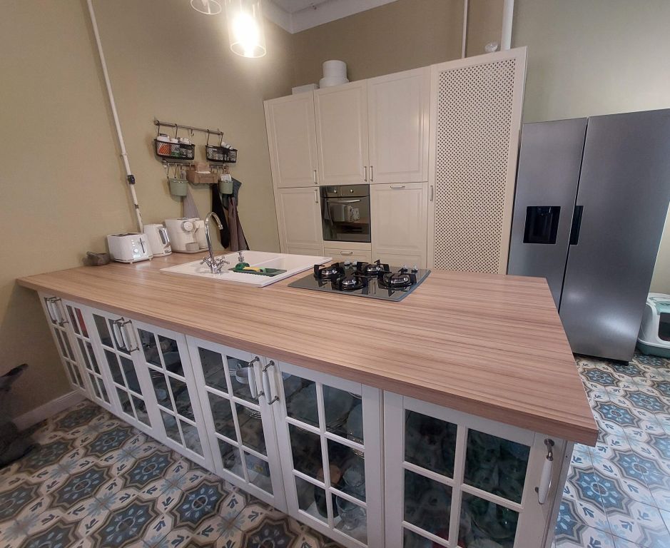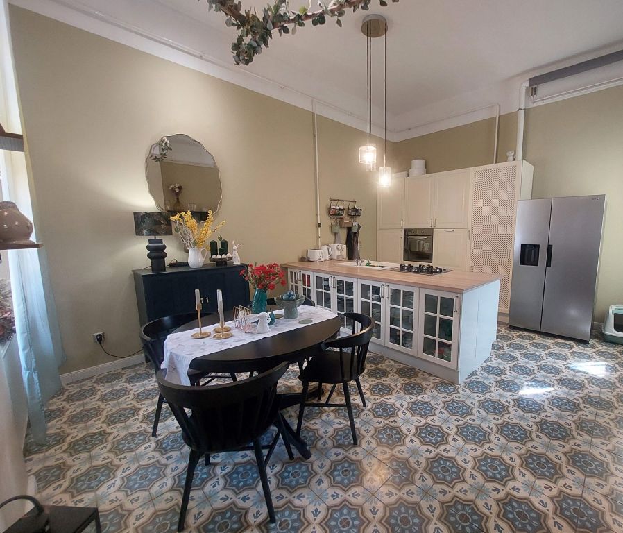 •Konyha nagy méretű étkezővel: a lakás egyik szíve, ahol a közös főzések és nagy vacsorák kényelmesen helyet kapnak. Az igényes, beépített konyhabútor a vételár részét képezi.
