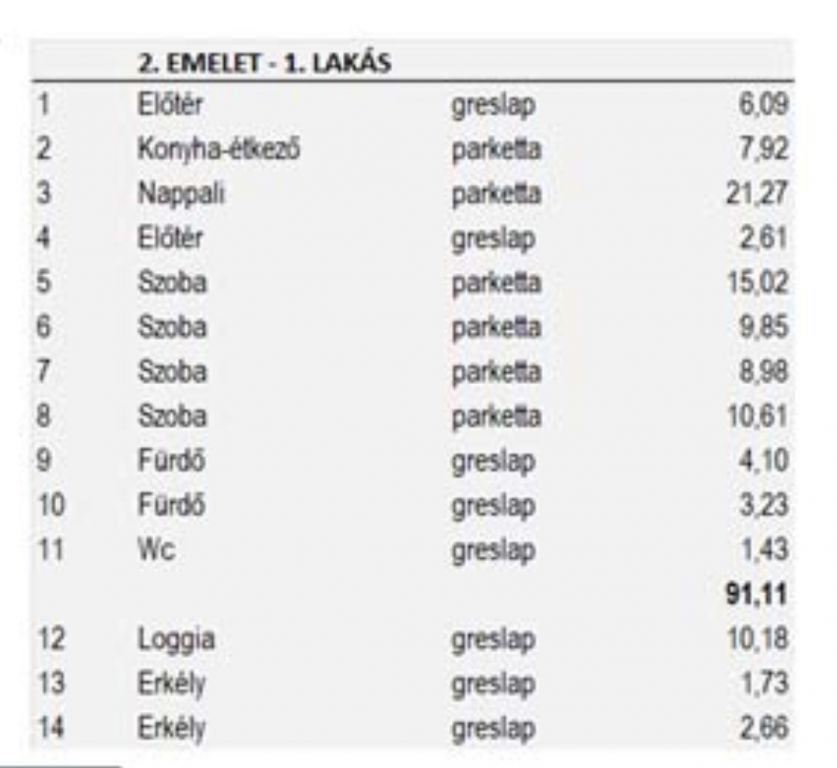 Lakások főbb jellemzői: