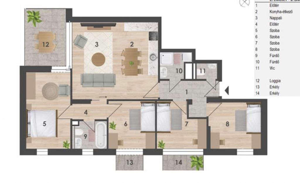 - 1–5 szobás elosztás, 30–130 m²-es alapterülettel