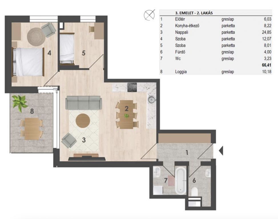 - 1–5 szobás elosztás, 30–130 m²-es alapterülettel