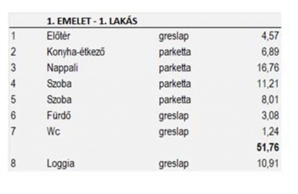 Lakások főbb jellemzői: