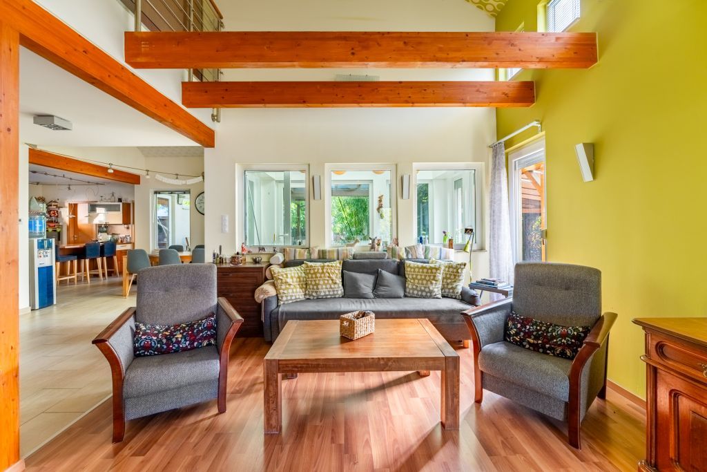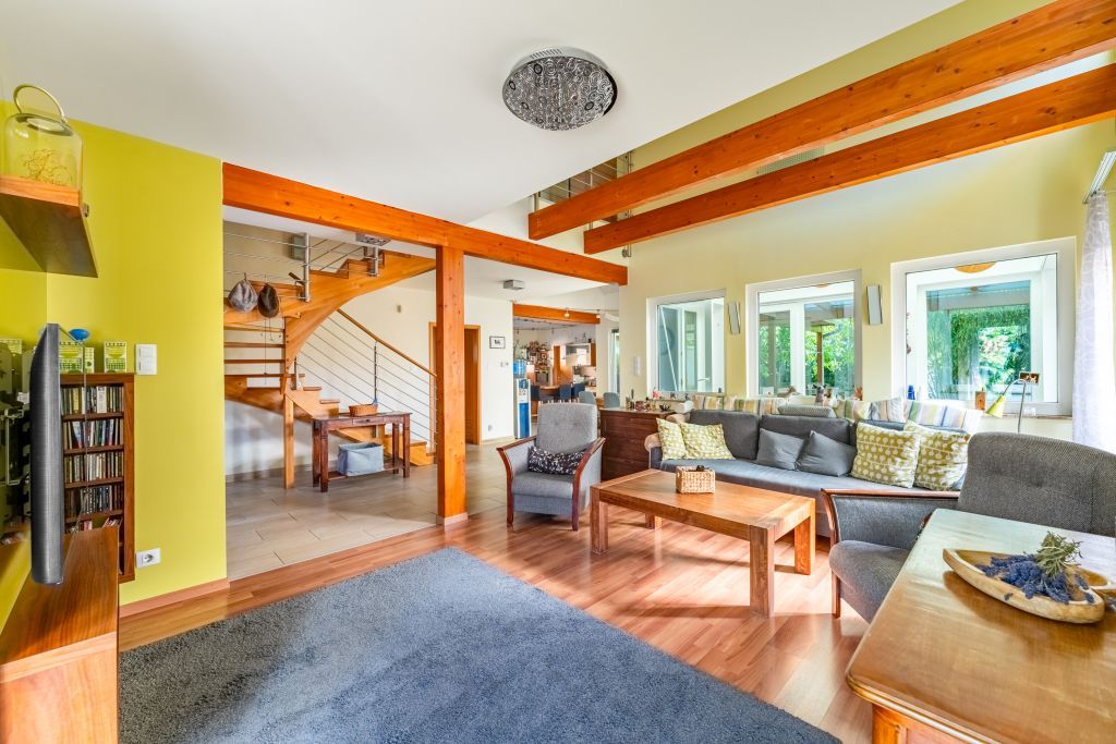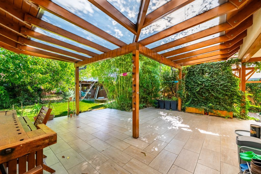 A ház különlegessége a tágas, fedett terasz, amely tökéletes helyszíne a családi és baráti összejöveteleknek. A nappali világos, nagy belmagasságával igazi otthonos hangulatot áraszt közvetlen kertkapcsolattal, az emeleti szobák pedig zavartalan nyugalommal szolgálnak. A konyha-étkező korszerű és kényelmes. A télikert egész évben élvezhető kertkapcsolatot ad.
