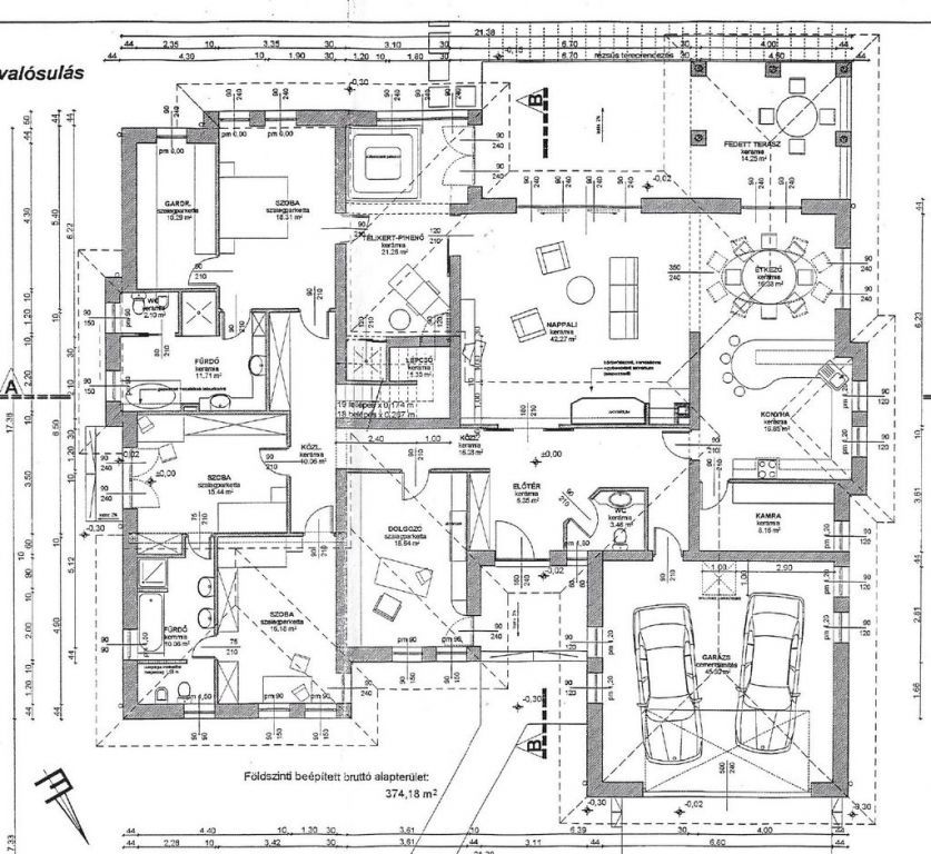 - kétállásos, házon belüli garázs