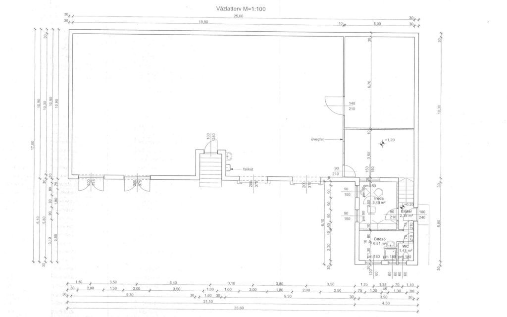 Bruttó 308 m² / ebből kb. 250 m² tágas, szárazraktár, és kb. 50 m² iroda/szociális blokk /