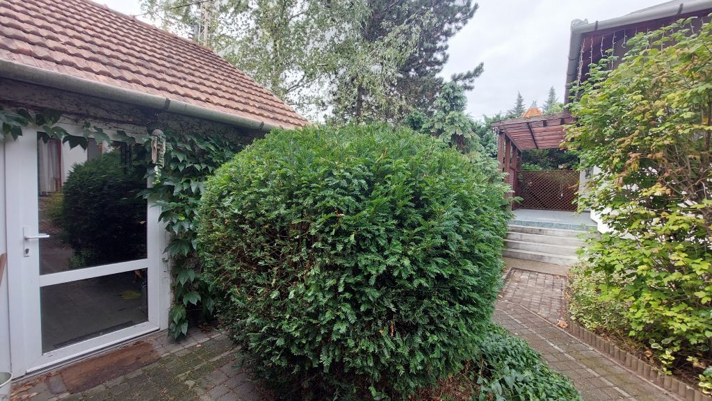Érd, Fenyves-Parkváros legkedveltebb részén, egy 757 nm-es, parkosított ősfás telken elhelyezkedő, 137 nm-es, egyszintes, 4 szobás, duplakomfortos családi ház ELADÓ!
