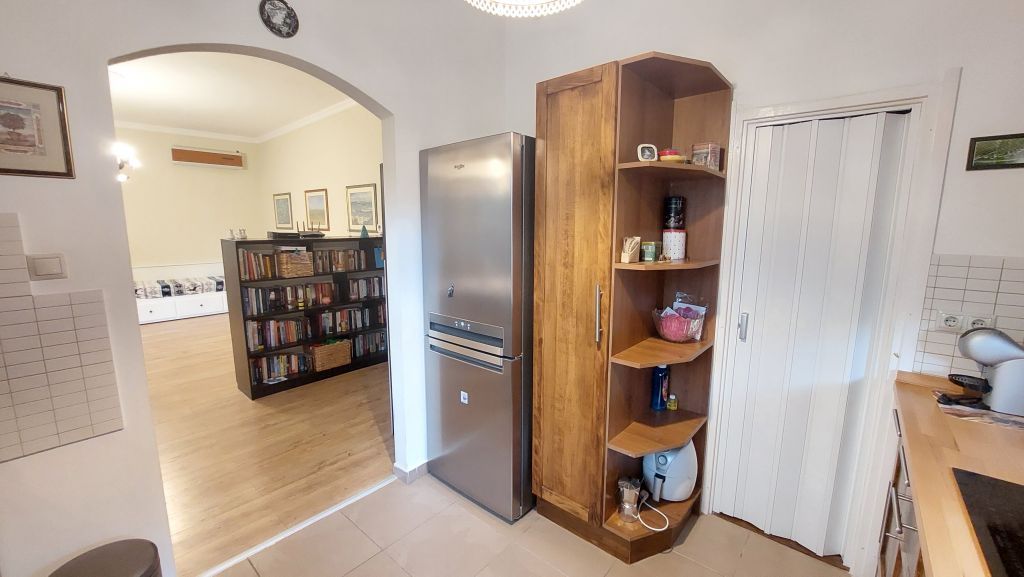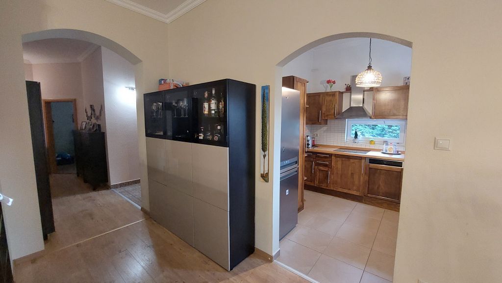 - Nappali étkezővel, boltívvel elválasztott konyha kamrával