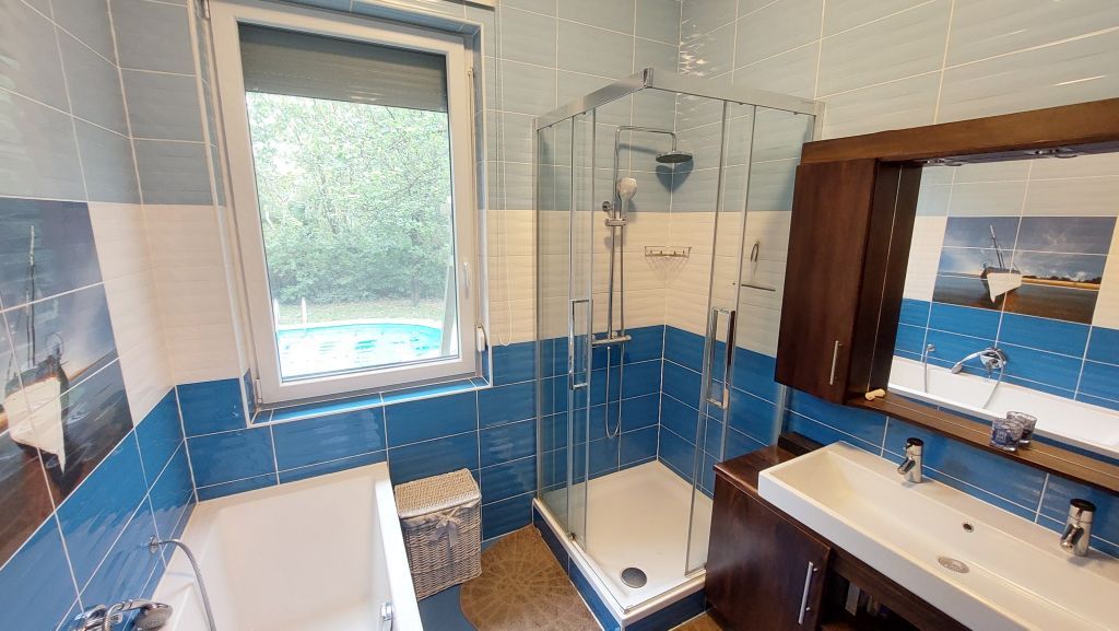 A kert igazi ékköve a 30 m³-es (620x360, 150 cm mély) medence, melynek gépészetét két éve cserélték, és fűtőszőnyeggel is felszerelték! Hűsölés és kikapcsolódás a saját kertedben!