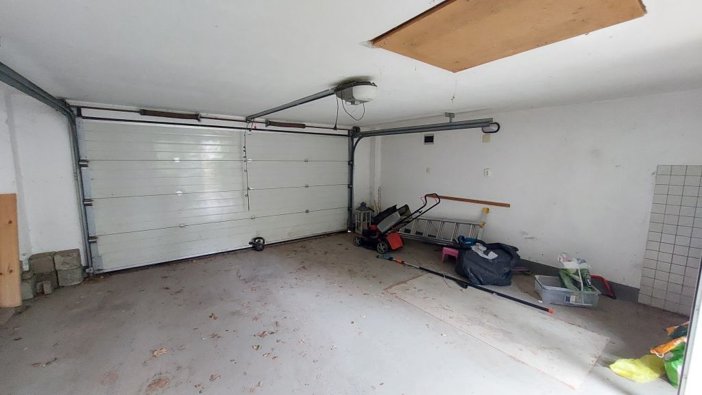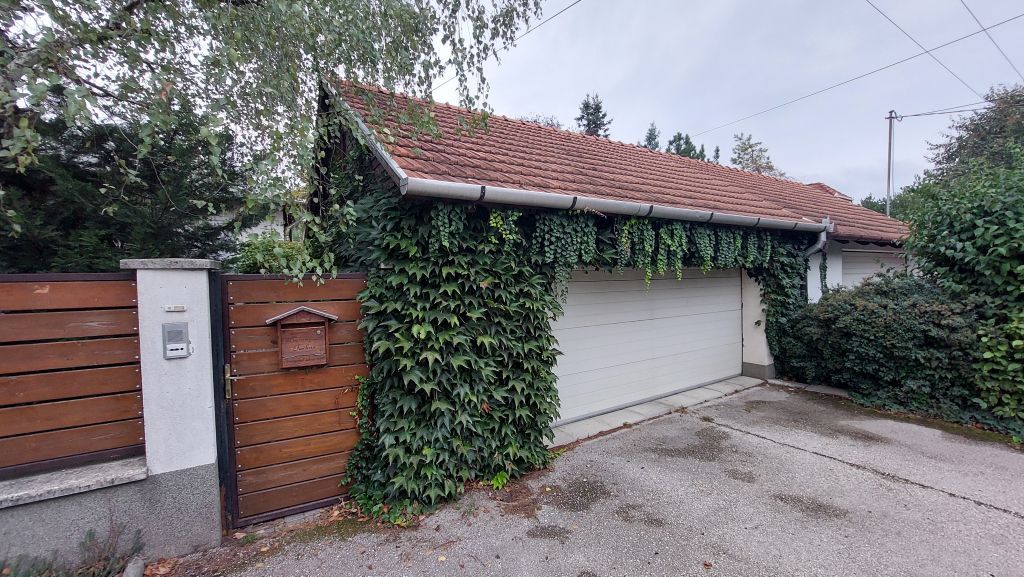 A 31,3 nm-es, aknás, fűtött GARÁZS külön épületben található, két gépjármű beállására alkalmas. A falazata 30 nm-es téglából épült, cserépfedéssel, elektromos, távirányítású kapuval ellátva (idén októberben cserélt új kapu-motorral). A kert irányába hőszigetelt, műanyag nyílászárók vannak. A padlástérben egy tároló lett kialakítva, lenyitható lépcsőfeljáróval. A garázs alatt, külső lejáraton keresztül megközelíthető, 31 nm-es pince biztosít extra tárolási lehetőséget.