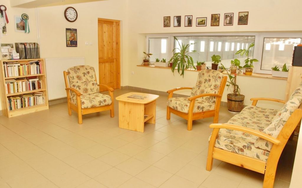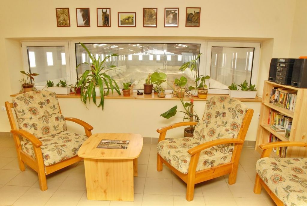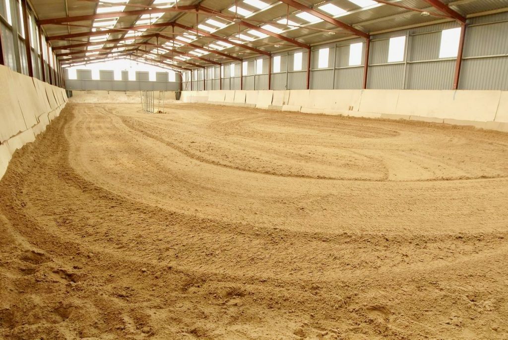 Fedett lovarda: 1479 m²-es, impozáns és tágas csarnok, amely egész évben zavartalan edzéslehetőséget biztosít. 10 box. 18 x 60 méteres fedett lovarda.