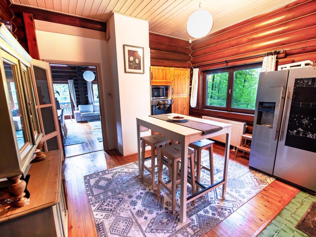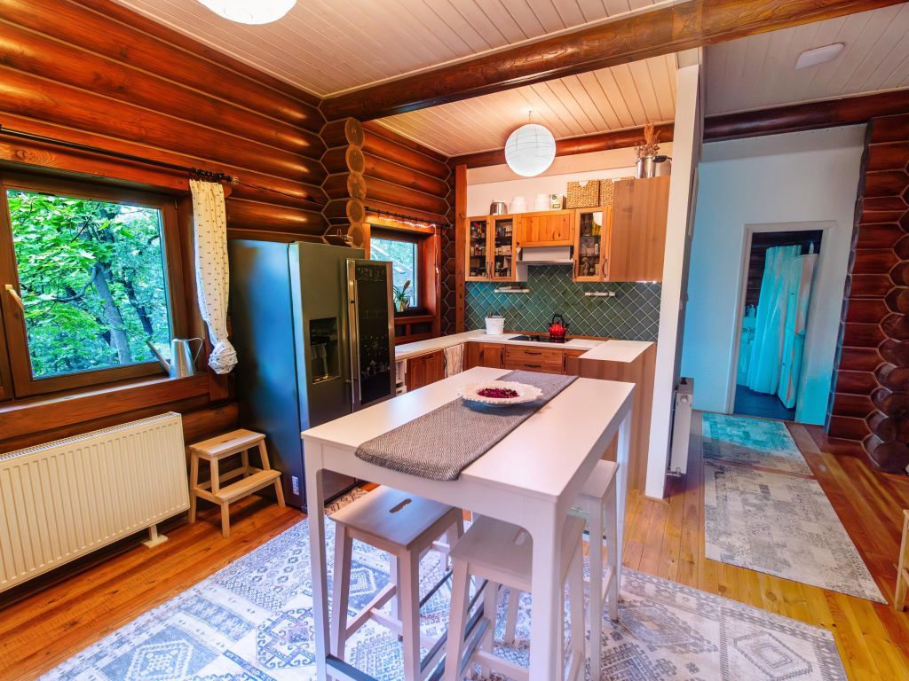 Fenntartható kényelem: A masszív rönkfalak kiemelkedő hőszigetelése és az átgondolt fűtésrendszer télen-nyáron alacsony rezsit és maximális komfortot nyújt.