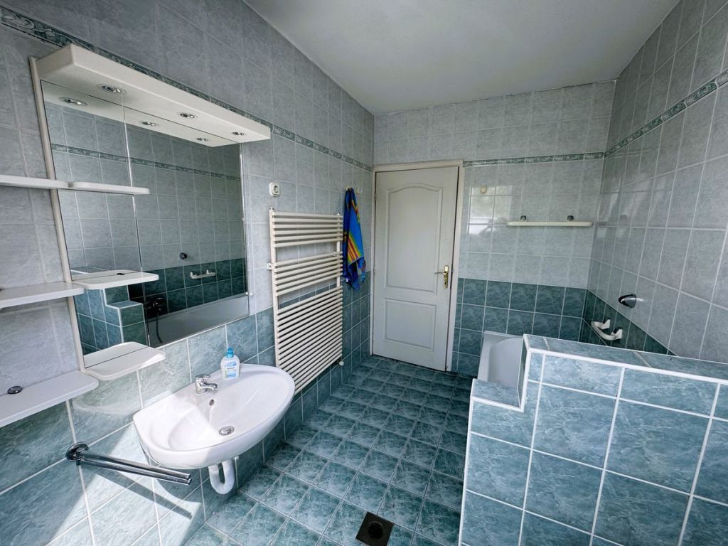 Az emeleten három hálószoba, egy kádas fürdőszoba, valamint egy tágas társalgó kapott helyet.