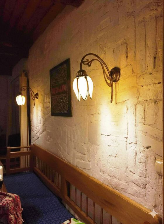 - A fényekről tulipánformájú falilámpák gondoskodnak, megteremtve a meghitt hangulatot.