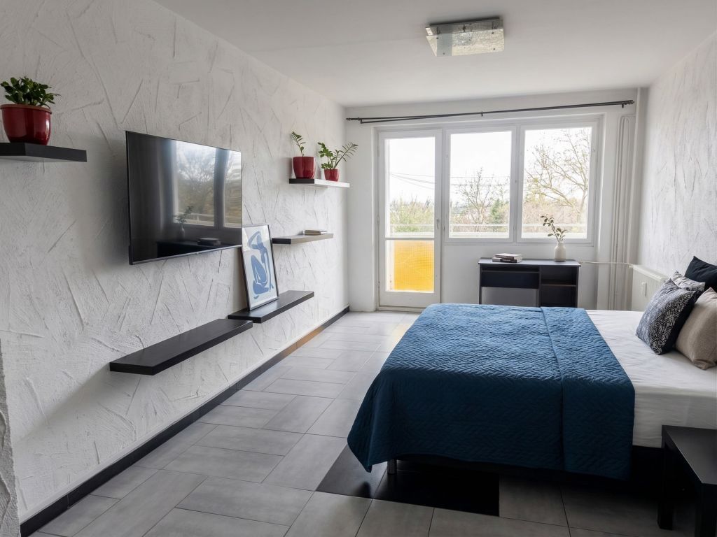Méret: 55 m², 2 különnyíló szobával és terasszal.
