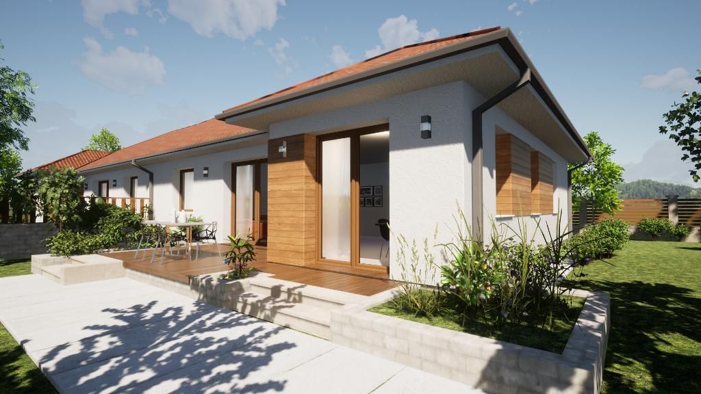 A tágas és világos otthonokban amerikai konyhás nappali, étkező, három hálószoba, (emeleten + 2 félszoba, fürdőszoba) valamint kertkapcsolatos terasz várja új lakóit.