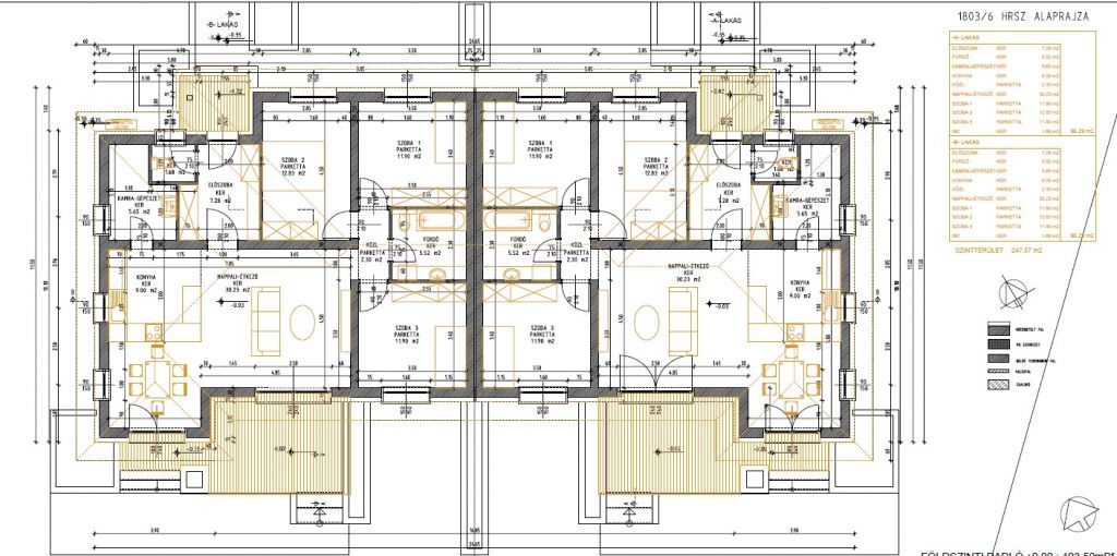 -Hálószobák: 12 m², 11,5 m², 11,2 m² (+ emeleti: 8nm, 8nm)