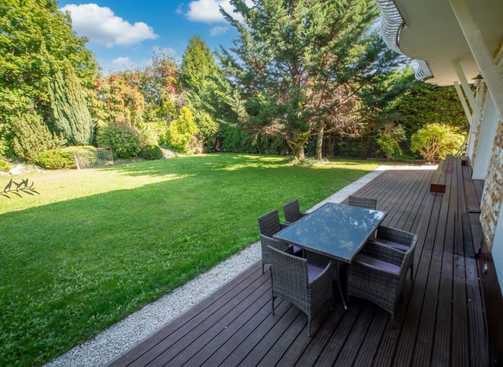 A lakáshoz két erkély és egy 33 m²-es, félig fedett terasz tartozik, amelyek a parkosított kertre nyílnak. Ideális helyszínt nyújtanak családi vacsorákhoz, baráti összejövetelekhez vagy a reggeli kávéhoz.