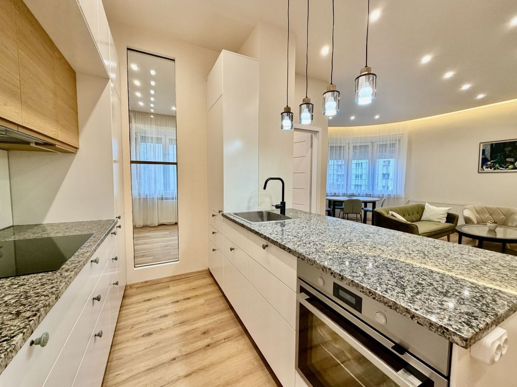 Az ingatlan teljes körűen felújított, frissen berendezett, a bútorok és a gépesítés új. A lakás még nem lakott, prémium állapotban várja első bérlőjét.