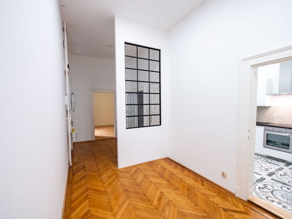 Kiadó egy 109 m2-es, teljeskörűen felújított nagypolgári belvárosi lakás gondos, impozáns társasházban.