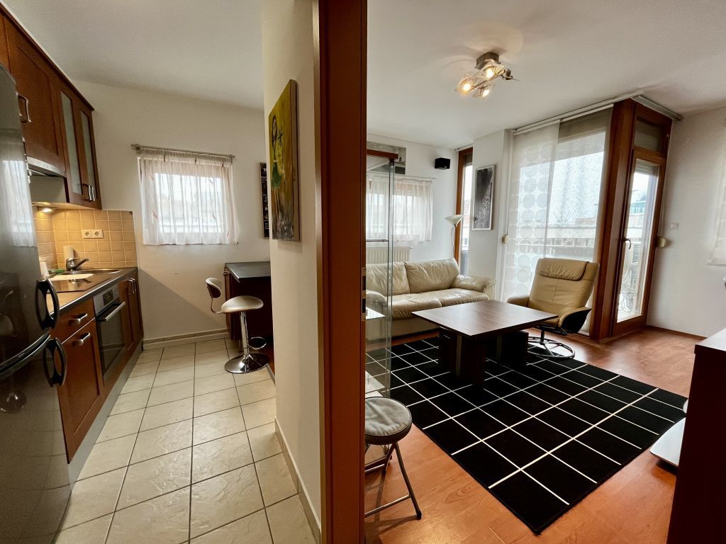 Kiadó a XIII. kerületben, az Angyalföldi úton egy teremgarázs hellyel rendelkező, 5. emeleti, frissen festett, modern és igényes állapotú 44 m²-es, amerikai konyhás nappali + külön hálószobás lakás, 4 m² erkéllyel.